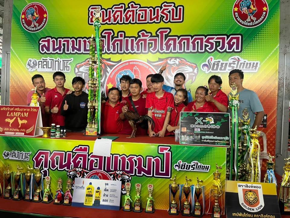 เจ้าของไก่คือ “เจ้าส้มโอ หนองขอนทีม” แชมป์สนามแก้ว โคกกรวดเมื่อวานนี้