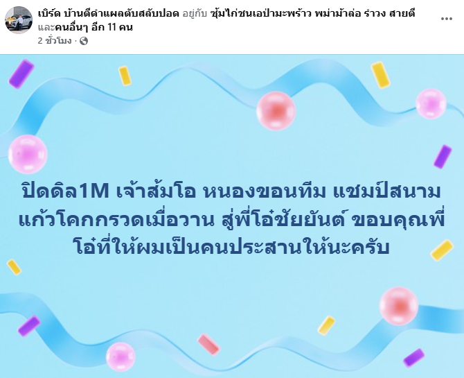 พร้อมเผยว่าช่วงเกิดเหตุยังอยู่ในสนามดูไก่ของตนเองที่ชนอยู่ด้วยซ้ำ