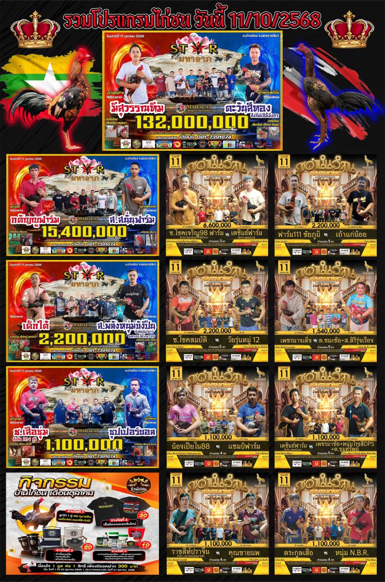 วันนี้วงการไก่ชนลุกเป็นไฟ เมื่อสองสนามดังเปิดชนพร้อมกันแบบไม่มีใครยอมใคร ทั้ง สนามมหาลาภ และ สนามไก่ทองอินเตอร์ เต็มไปด้วยคู่มันส์ระดับเงินล้านทุกคู่