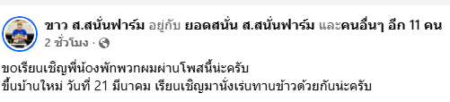 ได้โพสต์เรียนเชิญผ่านช่องทางส่วนตัวด้วยบรรยากาศเป็นกันเอง ระบุว่า