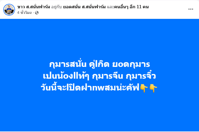 วงการไก่ชนกลับมาคึกคักอีกครั้ง เมื่อกุมารสนั่น คู่เกิดยอดกุมาร ถูกเปิดฝากผสมอย่างเป็นทางการ ไก่หนุ่มสายเลือดแชมป์จาก เสี่ยขาว ส.สนั่นฟาร์ม ที่หลายซุ้มเฝ้าจับตามองกุมารสนั่นไม่ใช่ชื่อใหม่ แต่คือความหวังรุ่นต่อไปของตระกูลกุมาร ด้วยการเป็น น้องแท้ๆ ของกุมารจีน และกุมารจิ๋ว สายเลือดที่พิสูจน์ผลงานมาแล้ว ทั้งชื่อเสียง ความแข็งแกร่ง และความชัดเจนในสนามชนโครงสร้าง กระดูก และเชิงชน ถูกถ่ายทอดมาอย่างเด่นชัดทำให้การตัดสินใจเปิดฝากครั้งนี้ ถูกจับตามองเป็นพิเศษเสี่ยขาวย้ำชัดว่า ทุกก้าวต้องมีเหตุผล ไม่เร่ง ไม่ขายฝันเน้นต่อยอดจากสายเลือดจริงที่พิสูจน์ได้ไม่ใช่เพียงชื่อหรือกระแสชั่วคราวการเปิดฝากผสมครั้งนี้ ถือเป็นจุดเริ่มต้นสำคัญของรุ่นใหม่ที่หวังสานต่อความสำเร็จของสายกุมารให้เดินหน้าอย่างมั่นคงแฟนไก่หลายซุ้มต่างรอคอยผลผลิตในอนาคตเพราะเชื่อว่าความชัดเจนจะเป็นคำตอบที่ดีที่สุดและ กุมารสนั่น อาจกลายเป็นอีกเสาหลักของ ส.สนั่นฟาร์ม ในวันข้างหน้า
