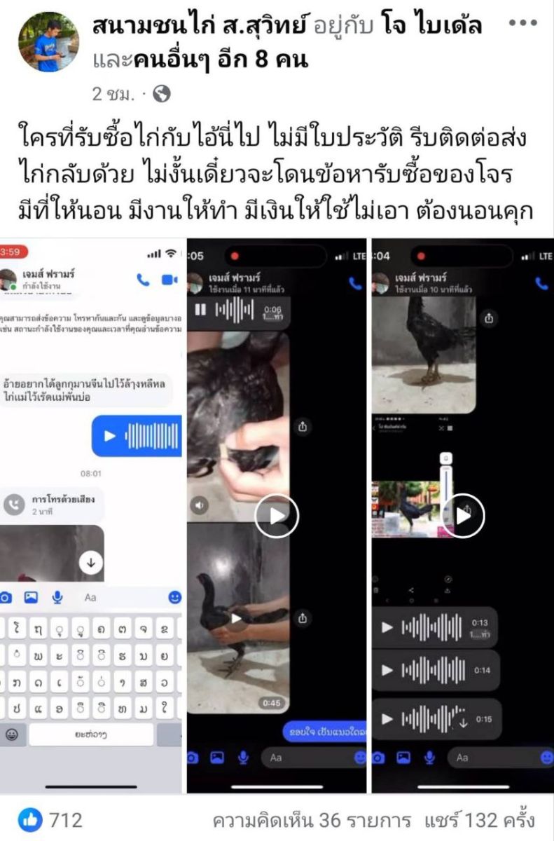 คนงานที่มาสมัครใหม่เข้ามาเมื่อวันที่ 30 เดือนที่แล้วตอนนี้อยู่มาได้เดือนกว่าๆ ทางฟาร์มจับได้ว่ามีการทุจริตเพราะลูกค้าโทรมาเช็คว่ากิ๊ฟปีกนี้เป็นไก่ที่มาจากทางฟาร์มหรือไม่ เพื่อความแน่ใจทางพี่โอ๋จึงตอบกลับลูกค้าหลังจากที่เช็คเรียบร้อยแล้วว่าเป็นไก่ที่อยู่ในฟาร์ม และแปลกใจว่ามีลูกค้ารู้รายละเอียดนี้ได้อย่างไรทั้งๆที่เป็นไก่หนุ่มเลี้ยงไว้รวมในล็อคปล่อยไก่ จึงได้เข้าไปที่ฟาร์มซึ่งในฟาร์มนี้เป็นที่ปล่อยไก่หนุ่มมีทั้งหมด 10 ล็อค ล็อคละประมาณ 200 กว่าตัวเป็นไก่หนุ่มอายุ 5-6 เดือน ซึ่งเข้าไปดูในมือถือของคนที่ดูแลซึ่งที่นี่ดูแลโดยคนงาน 2 คนที่เป็นผัวเมียกันและเลี้ยงลูกอีก 1 คน และก็ได้เจอหลักฐานหลายอย่างอาทิเช่น การส่งไก่กลับไปที่ลาวซึ่งเป็นบ้านเกิดหลายตัว แชทการคุยกับลูกค้าซึ่งอ้างว่าที่นี่เป็นฟาร์มของตัวเอง รวมถึงแชทที่เป็นหลักฐานในการติดต่อกับซุ้มใหญ่ๆหลายซุ้มไม่ว่าจะเป็นการเข้าไปถามซื้อสายพันธุ์ของเขาเพื่อตีสนิท และการส่งรูปไก่ไปเพื่อขาย ซึ่งมิจฉาชีพคนนี้หลังจากที่เข้ามาอยู่ในฟาร์มได้ 3 วัน ก็ส่งไก่ที่ขโมยจากฟาร์มกลับไปที่บ้าน และมีอีกหลายต่อหลายตัวที่ขายให้กับลูกค้าของมัน ทางฟาร์มฝากแจ้งข่าวสำหรับใครที่รับซื้อของโจรโดยรู้เท่าไม่ถึงการณ์ ให้รีบติดต่อและนำมาคืนโดยด่วนมิเช่นนั้นจะโดนข้อหารับซื้อของโจรไปด้วย อีกทั้งฝากบอกกับสมาชิกด้วยว่าก่อนซื้อต้องศึกษาให้ดีดูใบประวัติ และกิ๊ฟปีกให้แน่ชัด ถ้าไม่แน่ใจให้เช็คที่ต้นสังกัดได้โดยตรง เพราะตอนนี้กิ๊ฟปีกก็มีปลอมให้เห็นกันแล้ว อย่าเห็นแก่ของถูกจนกลายเป็นเหยื่อของมิจฉาชีพ ฝากไว้ให้คิดจากพี่โอ๋ชัยยันต์ฟาร์ม