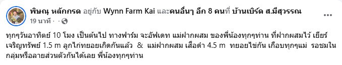 พี่น้องท่านใดที่ฝากผสมไว้ สามารถรอชมภาพและข้อมูลอัปเดตได้ใน กลุ่มทางฟาร์ม หรือสอบถามผ่าน ไลน์ส่วนตัว ได้โดยตรง ทางฟาร์มยืนยันจะดูแลและ