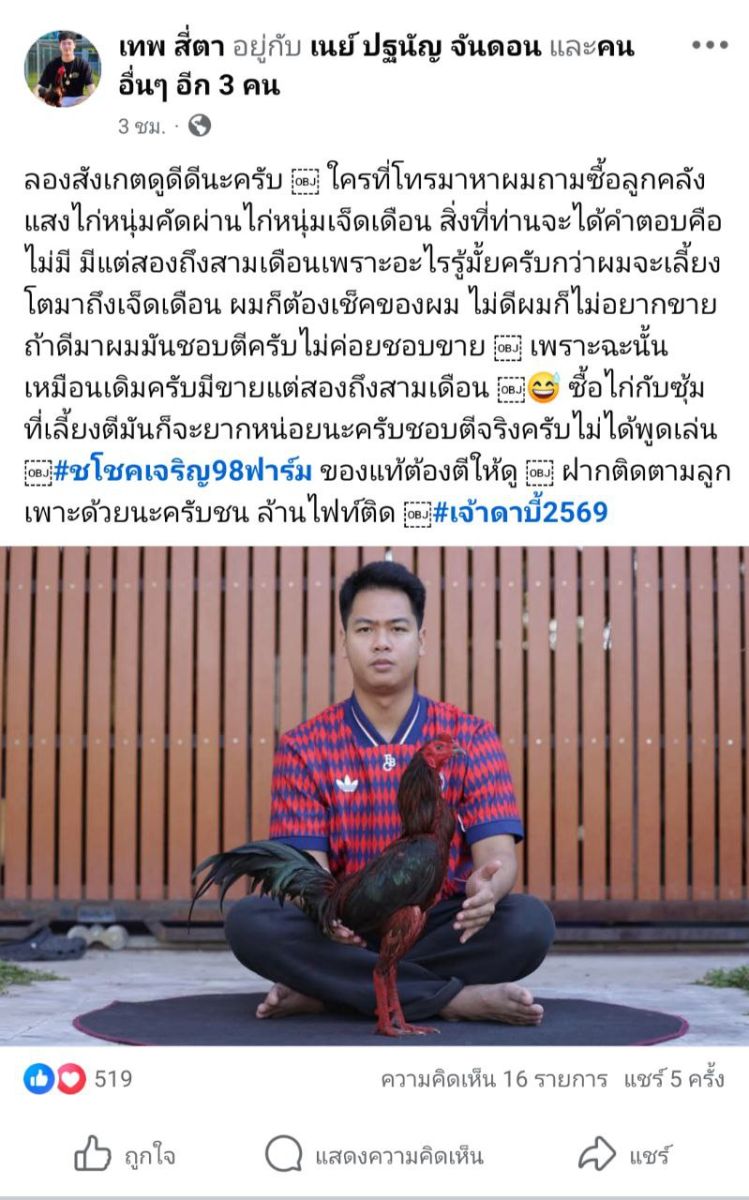 ออกมาให้มุมมองที่ชัดเจนกับวงการไก่ชน พร้อมฝากข้อคิดให้พี่น้องนักเลี้ยงได้ลองสังเกตกันดีๆ โดยเฉพาะใครที่เคยโทรมาสอบถามเรื่อง