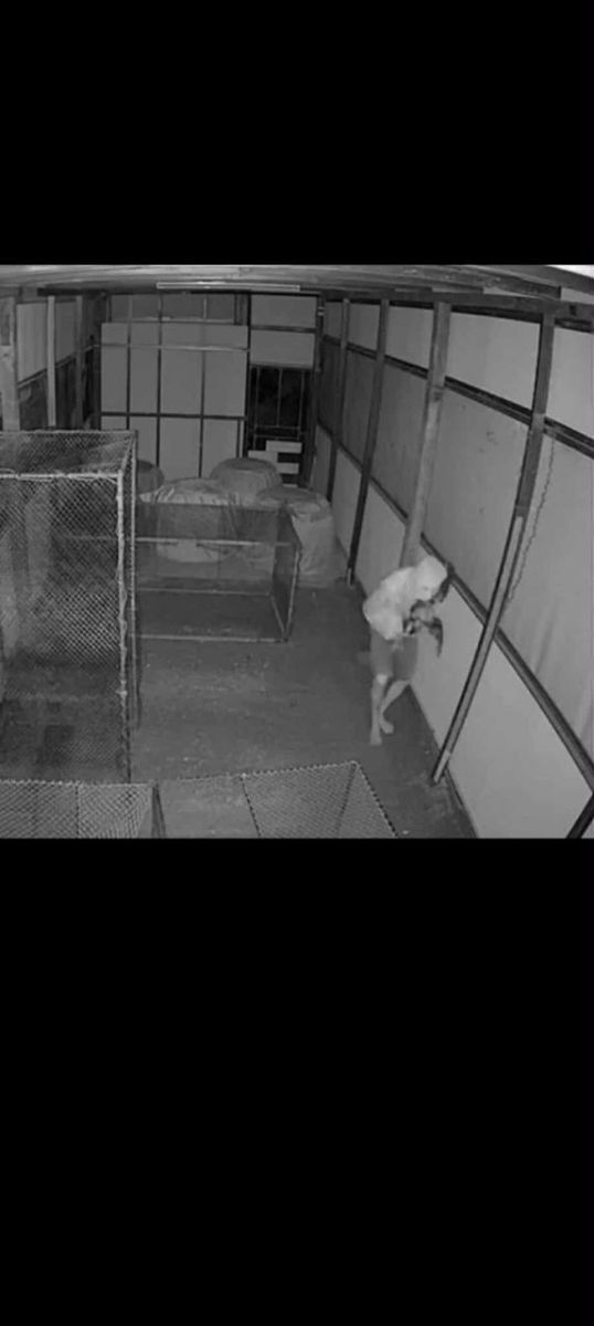 เป็นช่วงที่คนกำลังนอนหลับสนิทอย่างเต็มที่ผู้ไม่หวังดีคนดังกล่าวมีลักษณะการกระทำที่เข้าไปในเขตที่พักไก่ ในส่วนที่ให้ไก่นอนเป็นประจำ และได้เข้าไปเปิดมุ้งดูแต่ละตัวที่มีรอยทาเดือย นั่นหมายความว่ามันจ้องเฉพาะไก่ที่ติดมัดจำ เดินหายังใจเย็นสลับกับหมอบคลาน เหมือนลักษณะคุ้นชินกับสถานที่ และมีไก่บางตัวที่เตลิดหนีออกไปไกลสุ่มที่พัก มิจฉาชีพคนดังกล่าวก็ยังอาศัยความใจเย็นตามไปจับไก่ที่หลุดออกไปและเอายามาป้อนแบบเห็นๆ ก่อนกลับออกไปก็ยังคลุมมุ้งให้เป็นปกติ ไม่ว่าจะมีเสียงไก่กระเต๊กดังแค่ไหนก็ตาม แต่ก็ไม่มีใครที่เข้ามาดู ต้องบอกว่าซุ้มเลี้ยงไก่ไม่ใช่คนนอกจะเข้ามาได้ง่ายๆเพราะอยู่สุดปลายทางที่เลี้ยงปลา ดังนั้นเจ้าของซุ้มชล่าใจ ไม่ทันได้ระวังแต่ก็ติดกล้องวงจรปิดเอาไว้