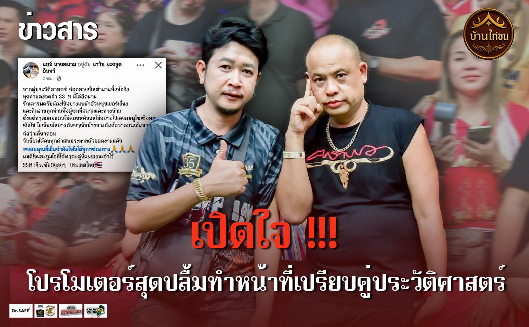 หลังโปรโมเตอร์ชื่อดังของสนาม ออกมาเปิดใจถึงความภาคภูมิใจที่ได้ทำหน้าที่เปรียบคู่ไก่ชนเดิมพันมหาศาล