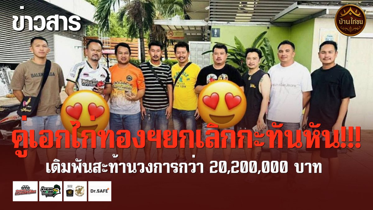 คู่เด็ดเดิมพันสูงถึง 20,200,000 บาท ที่มีกำหนดชนกันในวันนี้ ณ สนามไก่ทองอินเตอร์