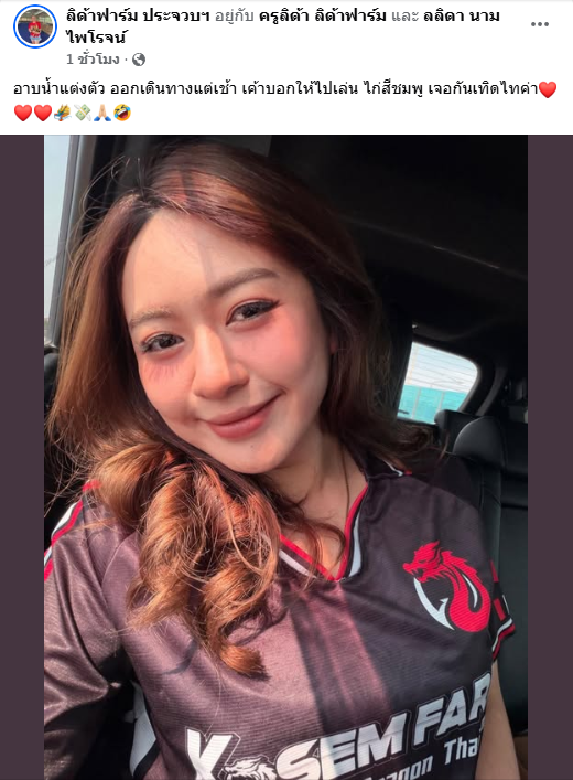 เช้าวันนี้บรรยากาศคึกคักตั้งแต่ฟ้ายังไม่สว่างอาบน้ำแต่งตัว เตรียมตัวออกเดินทางแต่เช้าเป้าหมายชัดเจน มุ่งหน้าสู่สนามเทิดไทตามคำเชิญเขาบอกให้ไปเล่น “ไก่สีชมพู” ตัวดังที่กำลังเป็นกระแสงานนี้ไม่ธรรมดา เพราะชื่อของลิดาฟาร์มการันตีความคุณภาพแฟนไก่ต่างจับตาว่าจะได้เห็นฟอร์มระดับไหนในวันนี้ ไก่สีชมพูขึ้นชื่อเรื่องเชิงชนจัดจ้านจังหวะเข้าออกไว เดินเกมเป็นระบบยืนระยะดี ไม่มีถอยให้เห็นง่ายๆ สนามเทิดไทวันนี้จึงร้อนแรงตั้งแต่ยังไม่เริ่มชนหน้าซุ้มเริ่มคึกคัก เสียงวิจารณ์ดังเป็นระยะคอไก่รู้ดีว่าคู่นี้มีของให้ลุ้นทุกยก ลิดาฟาร์มเตรียมความพร้อมมาเต็มที่ เป้าหมายไม่ใช่แค่ชนให้ครบยก แต่ต้องทำให้เห็นว่า“ของจริง”เป็นอย่างไร