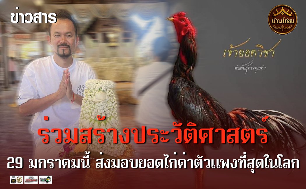 ยอดไก่ค่าตัวแพงที่สุดในโลก พร้อมเชิญชวนพี่น้องชาวไก่ชนไปร่วมสร้างประวัติศาสตร์หน้าใหม่ด้วยกัน