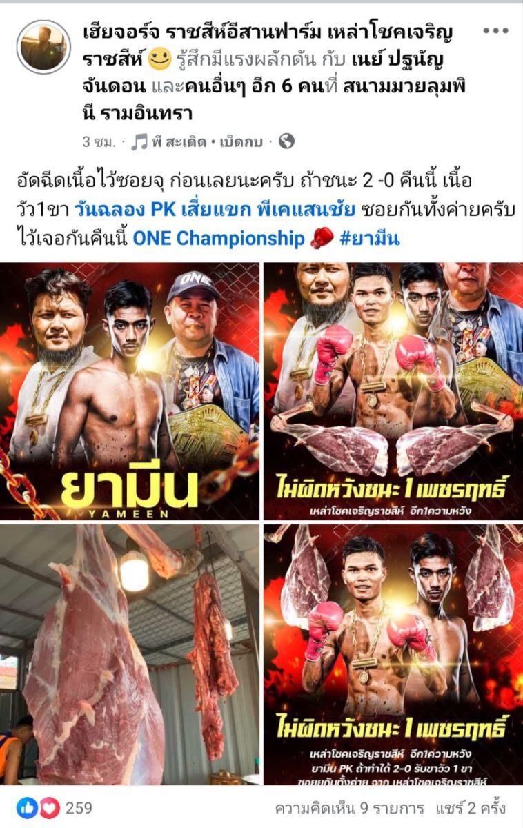 30,000 บาทแล้วเจ้าตัวก็ไม่ทำให้ผิดหวังหลังจาก ในศึกมวยไทยพลังใหม่ วันที่ 22 ตุลาคม 2568 เวทีราชดำเนิน เพชรฤทธิ์ เหล่าโชคเจริญราชสีห์ เอาชนะคะแนน ชูทรัพย์ ส.สละชีพ เป็นอีกความภูมิใจของเสี่ย จอร์จ ที่นักมวยได้ใส่สีเสื้อในนามตัวเอง นับ 1 วันนี้ความอยู่ที่ ยามีน พีเค ถ้าชนะได้ เสี่ย จอร์จ ได้อัดฉีนเนื้อไว้ซอยจุก่อนแล้ว รับ เนื้อวัว 1 ขา ซอยกันทั้งค่ายไปเลยครับ