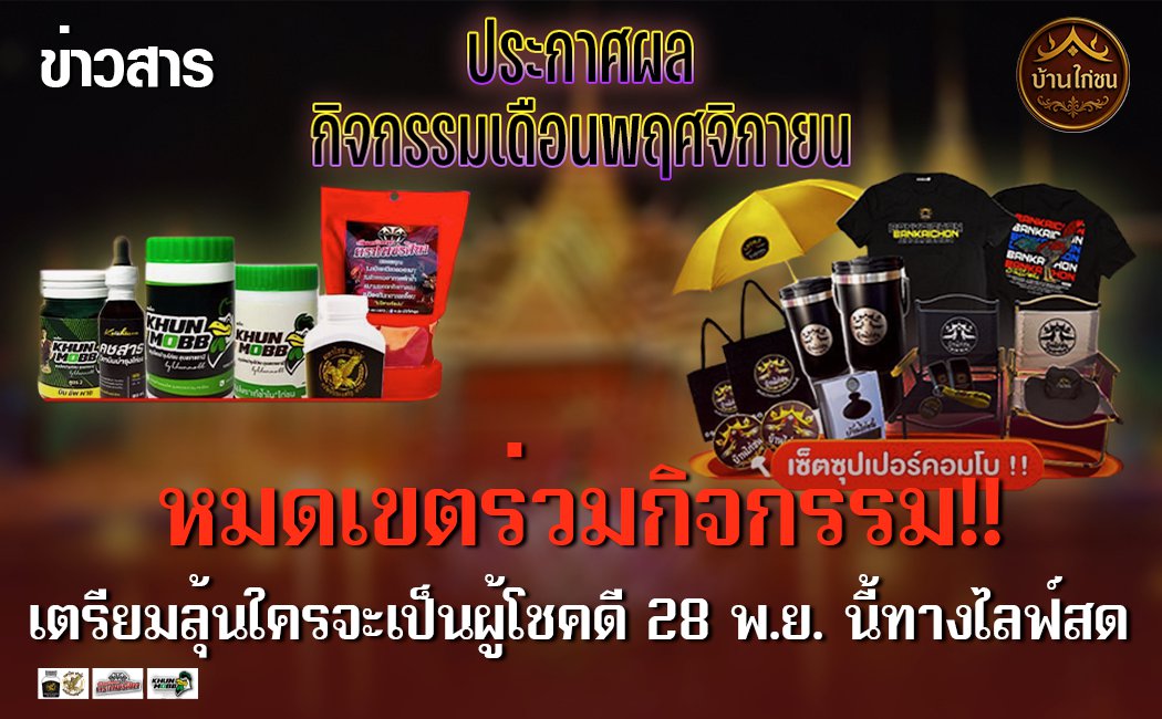 ทั้งนี้ บ้านไก่ชนจะทำการ ประกาศผลรางวัลในวันที่ 28 พฤศจิกายน 2568 ผ่าน ไลฟ์สดประกาศผลประจำเดือนบนช่อง YouTube “บ้านไก่ชน” แฟน ๆ สามารถติดตามลุ้นผู้โชคดีได้แบบสด ๆ ในวันดังกล่าว