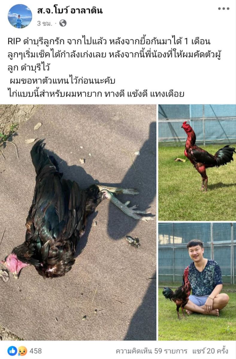 ไก่คุณภาพหายากสร้างความเศร้าและเสียดายในหมู่คนเลี้ยงไก่ชนอย่างมาก เมื่อ ส.จ.โบว์ อาลาดิน ออกมาโพสต์ข้อความอาลัยต่อการจากไปของ “ดำบุรี” ไก่ชนลูกรักที่เจ้าตัวดูแลและยื้อชีวิตกันมาอย่างสุดความสามารถนานกว่า 1 เดือน ก่อนจะจากไปอย่างสงบในที่สุด ส.จ.โบว์ เปิดใจว่า ตลอดระยะเวลาที่ผ่านมา ทีมงานและตัวเขาเองพยายามอย่างเต็มที่ ทั้งการดูแล การรักษา และการประคองอาการ ด้วยความหวังว่า ดำบุรี จะกลับมายืนได้อย่างสมบูรณ์อีกครั้ง แต่สุดท้ายก็ต้องยอมรับความจริงว่าไก่เก่งอีกหนึ่งตัวได้เดินทางไกลจากวงการไปแล้วสิ่งที่ทำให้หลายคนเสียดายยิ่งขึ้น คือช่วงเวลาสุดท้ายของ ดำบุรี ลูกๆ ของเขาเริ่มเติบโตจนสามารถเช็คเชิงได้ และเริ่มฉายแววความเก่งออกมาอย่างชัดเจน เป็นช่วงที่สายเลือดกำลังจะได้พิสูจน์ตัวเองในสนามจริง แต่กลับต้องมาเจอกับการสูญเสียพ่อพันธุ์หลักไปก่อนเวลาอันควร ส.จ.โบว์ ยังกล่าวถึงพี่น้องในวงการที่เคยให้เขาช่วยคัดตัวผู้จากสาย ดำบุรี ไว้ก่อนหน้านี้ โดยขอเวลาในการหาตัวแทนพ่อพันธุ์เข้ามาทดแทน เพื่อให้สายเลือดยังคงเดินหน้าต่อไปได้ ไม่ให้ความตั้งใจและผลงานของ ดำบุรี ต้องหยุดลงเพียงเท่านี้สำหรับ ดำบุรี ในมุมมองของ ส.จ.โบว์ ถือเป็นไก่ที่หายากมากในปัจจุบัน เป็นไก่ครบเครื่อง ทั้ง ทางดี แข้งดี และแทงเดือยคมจัด เป็นไก่ที่ไม่ใช่แค่สวยหรือดัง แต่เป็นไก่ที่มีของจริงในตัว และสามารถต่อยอดเป็นสายพัฒนาระยะยาวได้การจากไปของ ดำบุรี ไม่ได้เป็นเพียงการสูญเสียไก่ชนหนึ่งตัว แต่คือการสูญเสียไก่คุณภาพที่วงการต้องจดจำ และเป็นบทเรียนอีกครั้งของคนเลี้ยงไก่ ที่ผูกพัน ดูแล และทุ่มเทหัวใจให้กับไก่ทุกตัวเหมือนสมาชิกในครอบครัวแม้ตัวจะจากไป แต่ชื่อของ ดำบุรี จะยังคงอยู่ในความทรงจำ และอยู่ในสายเลือดของลูกๆ ที่กำลังเติบโต เพื่อสานต่อคุณภาพและศักดิ์ศรีที่พ่อเคยสร้างไว้ต่อไปRIP ดำบุรี ตำนานไก่ดีที่ยากจะหาใครแทนได้
