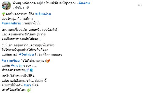 แต่บทเรียนจากวันที่แหลกสลาย ทำให้วันนี้เขารู้แล้วว่า…ความสุขที่แท้จริง ไม่ใช่การมีทุกอย่างให้คนอื่นอิจฉา แต่คือการมี