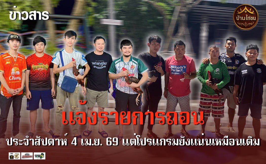 สนามไก่ทองอินเตอร์ประกาศแจ้งรายการถอนการแข่งขันประจำสัปดาห์
