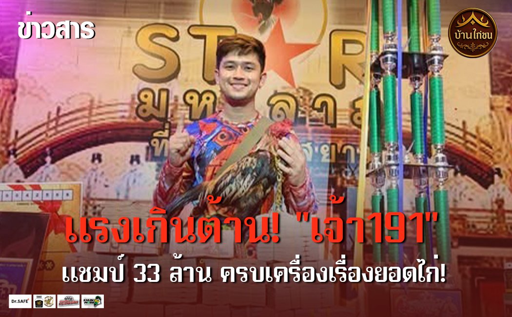 แชมป์ไม่ต้องพูดเยอะ เพราะทุกสนามเขารู้กัน! “เจ้า191” ไก่เก่งตัวท็อปดีกรีแชมป์ 33 ล้านบาท จากสายพ่อพันธุ์ที่แรงสุดในวงการตอนนี้ ประกาศความพร้อมเต็มสูบ พร้อมปิดการจองลูกเร็ว ๆ นี้ หลังมีคนจองเข้ามาแบบถล่มทลาย